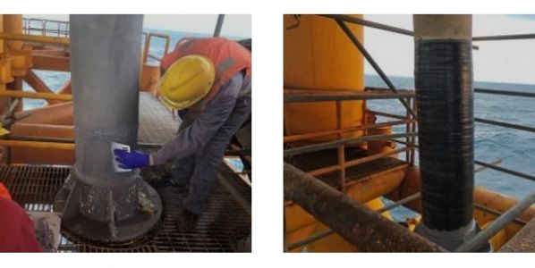 Handrails, brackets, wear plates can be “cold welded” into position avoiding the need for “hot work” and resulting in a reduction of down time and disruption to your operations. Our Belzona Superwraps pipe repair system is compliant to ASME PCC2 and ISO 24817 international standards. Our pipe repair and wrapping solutions have a service life of up to 20 years. The new Belzona “Superpad” is made from a carbon fibre composite material which is light weight yet possesses excellent mechanical properties. Superpad is ideal for use a “doubler plate” on holed or thin walled pipes or as a pipe wear pad.